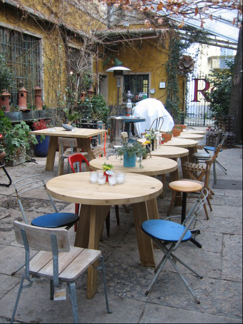 中庭には、隅々まで家具の配置にこだわるオーナーが、オランダ人デザイナーPiet Hein Eekに新しく注文したラウンドテーブルをきちんと並べて。
