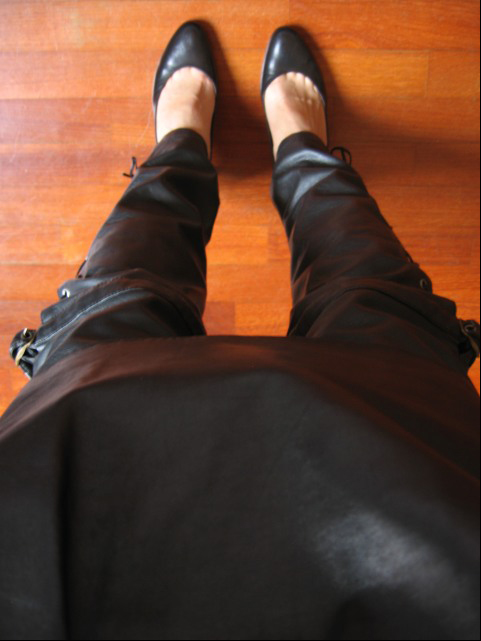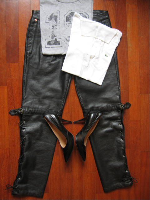 私だったら….レザーのパンツとスカート。これにシルク素材のシャツを合わせます。