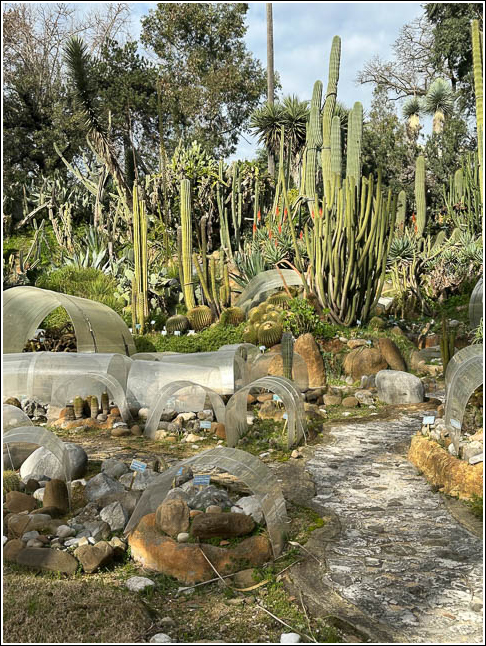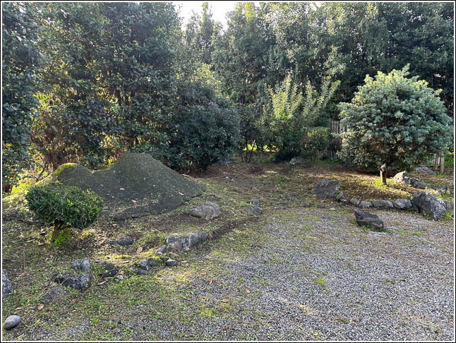 ナポリ植物園内。わび・さびの空間にもヴェスヴィオ山