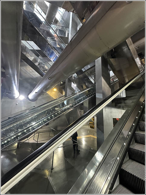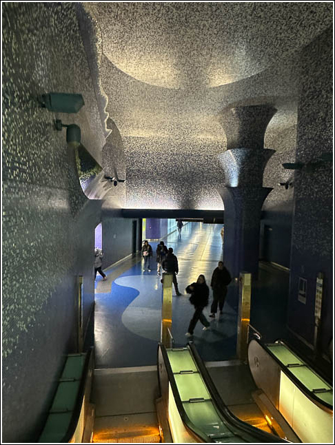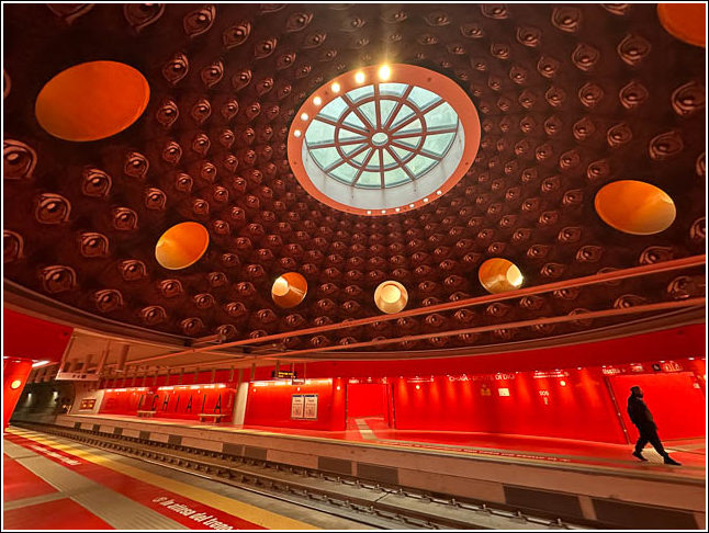 ナポリは地下鉄駅もスペクタクル! 光り輝くエスカレーターが交差して